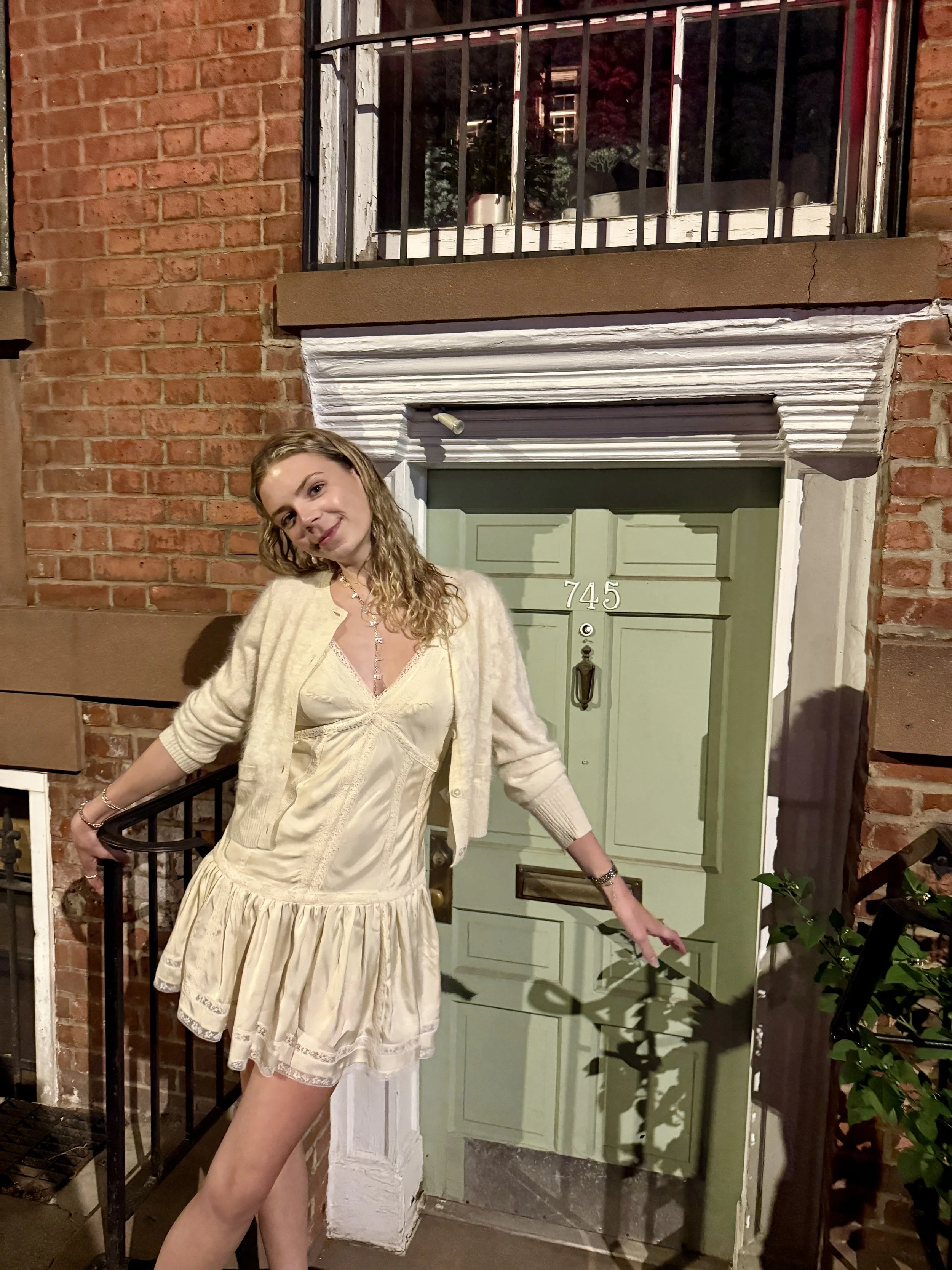 I made this dress as a personal project. I used silk charmeuse and antique French lace that I sourced. It was super fun to drape this and work with silk on bias. I cut out the fabric from under certain parts of the lace for added dimension.